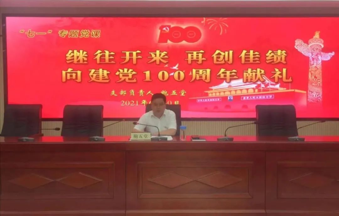 会议第一项,党务负责人宣读2021年度局党组、局机关党委关于“两优一先”表彰决定;会议第二项,获得局党组“优秀共产党员”荣誉称号的同志发表获奖感言;会议第三项,支部负责人、副院长鲍五堂以《继往开来 再创佳绩 向建党100周年献礼》为题,向与会同志讲“七一”专题党课。