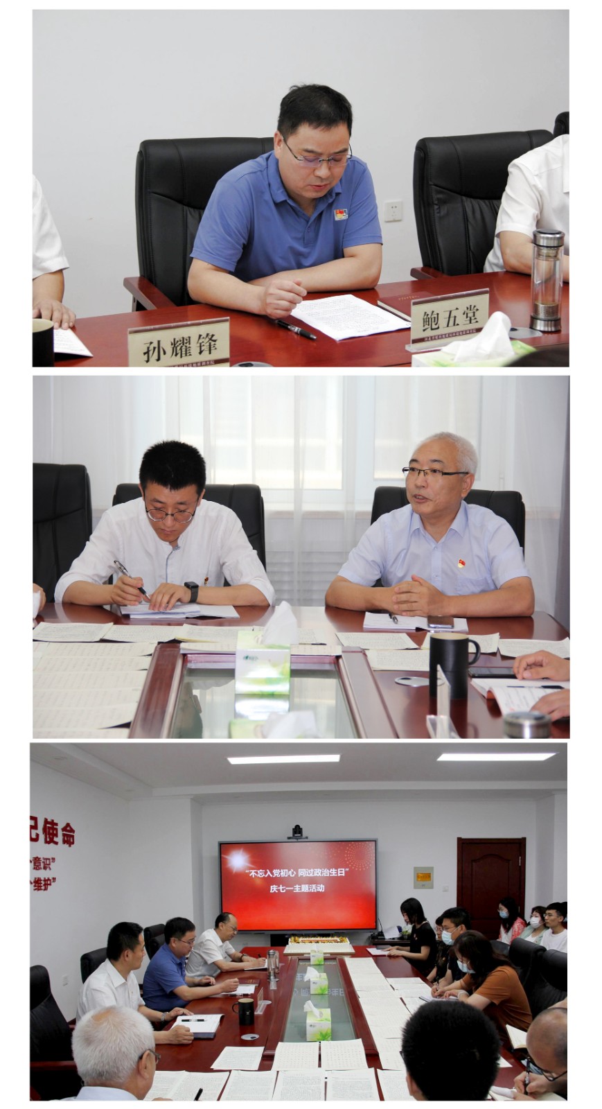 院党委委员、副院长鲍五堂介绍了我院成立至今党组织发展历程,并对党员提出希望要求,一要牢记初心使命,弘扬伟大建党精神。二要立足本职工作,开拓创新奋发作为。三要站稳人民立场,全心全意服务职工。院党委办主任王昕宣读了《致全院党员的一封信》,号召全院共产党员、预备党员、入党积极分子要筑牢初心使命、坚定理想信念,传承“三光荣”“四特别”地质精神,发扬先锋作用,积极投身到我院各项工作和建设的新征程中。